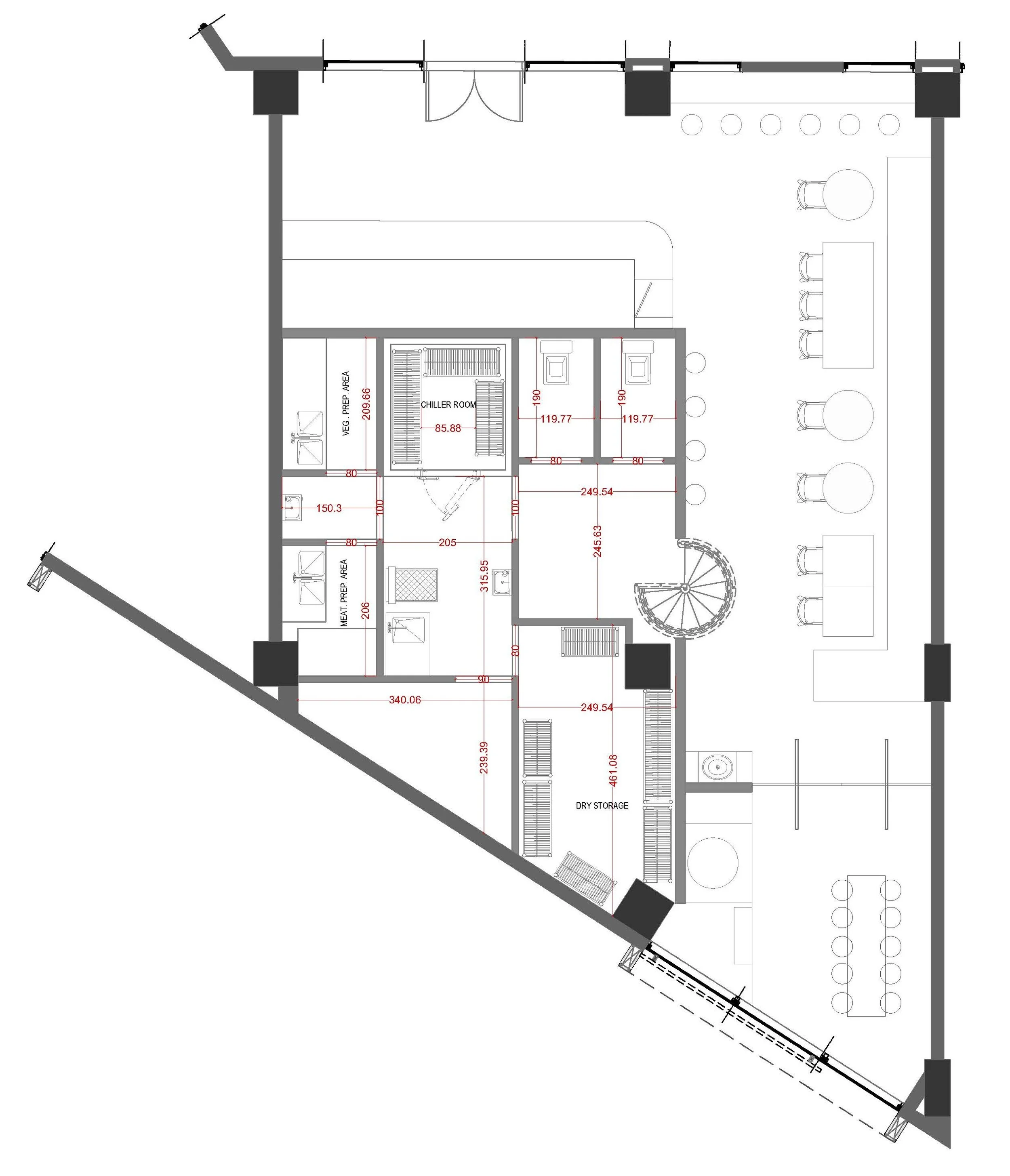 In addition to its culinary function, the mezzanine floor incorporates well-designed restroom facilities, offering convenience for both staff and patrons. The minimalist yet practical approach to this floor ensures a practical and organized backdrop to the culinary artistry taking place on the ground floor.