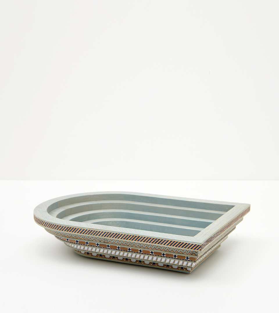 The Transcendence Oasis Bowl, with its stained blue and natural brown hues, stands as an artful representation of depth, elevated on a cascading stair base and adorned with marquetry strips. Drawing inspiration from global religious structures, the Transcendence Portal Bowl captures the essence of arched doorways in mosques, churches, and temples, complemented by stained French Oak wood. The Transcendence Circle Bowl takes cues from the circular form of Greek and Roman colosseums, featuring hand-carved marquetry strips for an attractive design. Finally, the Transcendence Rectangular Bowl embraces ancient architectural aesthetics, showcasing precision craftsmanship through marquetry strips and hammered brass strips on French Oak wood. Each bowl encapsulates the essence of spirituality, merging artistry with meticulous craftsmanship.